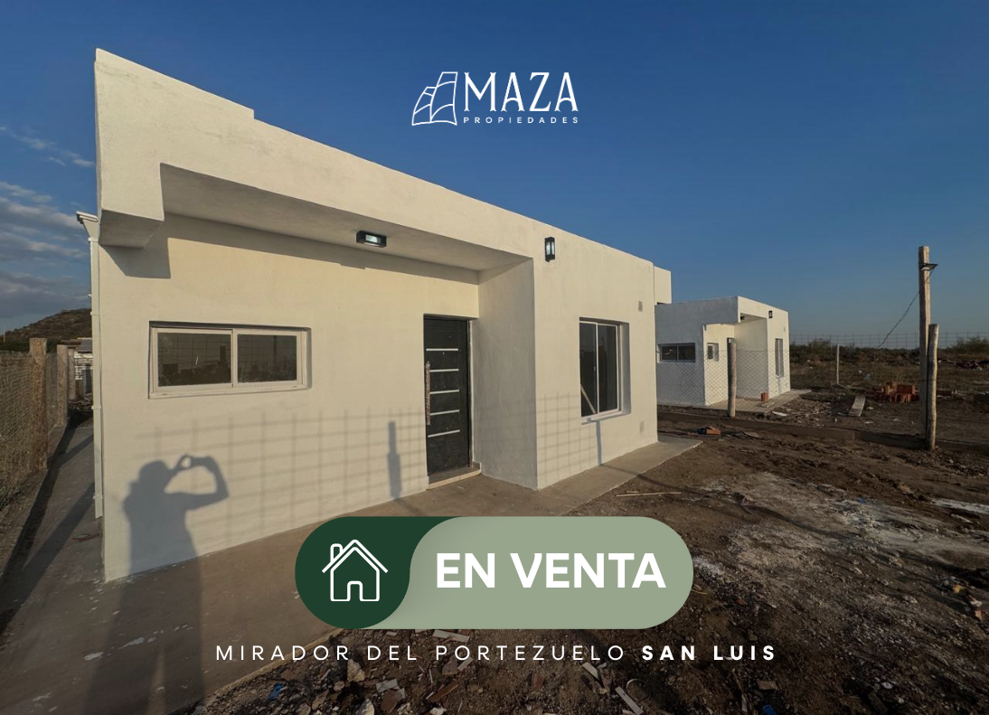 • Información: ¡Tu sueño de la casa propia, más cerca que nunca! CASA A ESTRENAR EN VENTA en Mirador del Portezuelo, San Luis. . APTA CRÉDITO HIPOTECARIO. - Superficie del terreno 320 mts2 - Superficie cubierta 35 mts2 - Cocina, living-comedor, baño, 2 dormitorios - Todos los servicios.